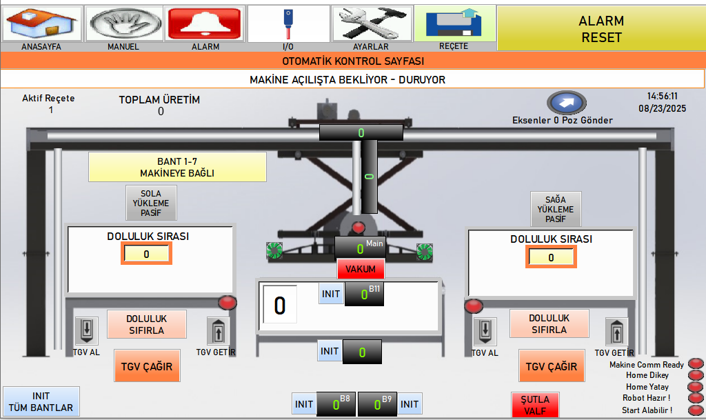 Otomatik TGV çağırma sistemini de aktif ettiğimiz makinemiz fırın çıkışında çalıştırıldı.